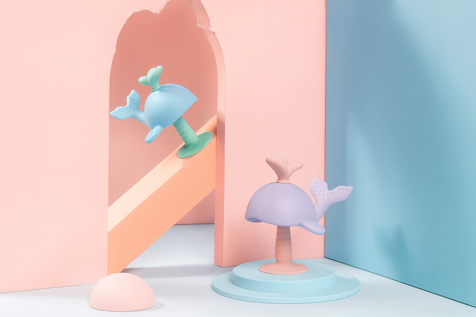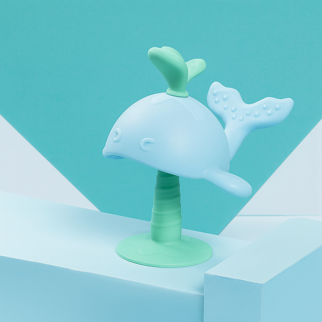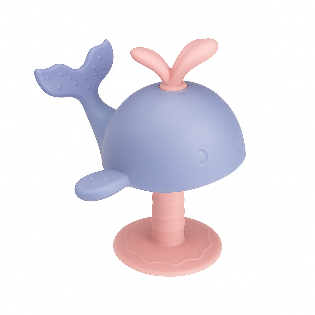 This cute whale-shaped teether is made from high-quality food-grade silicone, designed with soft bumps and multiple textures to massage gums, relieve teething pain, and support healthy oral development. The suction cup base makes it fun and stable, while the nipple-like design helps babies transition from breastfeeding to bottle feeding.