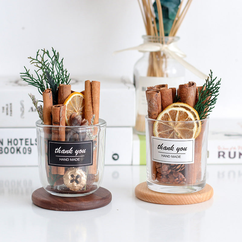 Fill your space with the warm, cozy scent of cinnamon and natural pine cones using this fire-free aroma diffuser cup. Made from dried flowers and natural materials, it provides a safe, long-lasting fragrance without flames, perfect for home, office, or relaxation spaces.