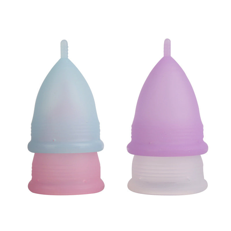 Product Information: Category: Silicone Menstrual Cup Shape: round short serration Material: Silicone Color: pink (large + small), blue (large + small), purple (large + small), white (large + small), folding cup Packing List: Silicone menstrual cup*1